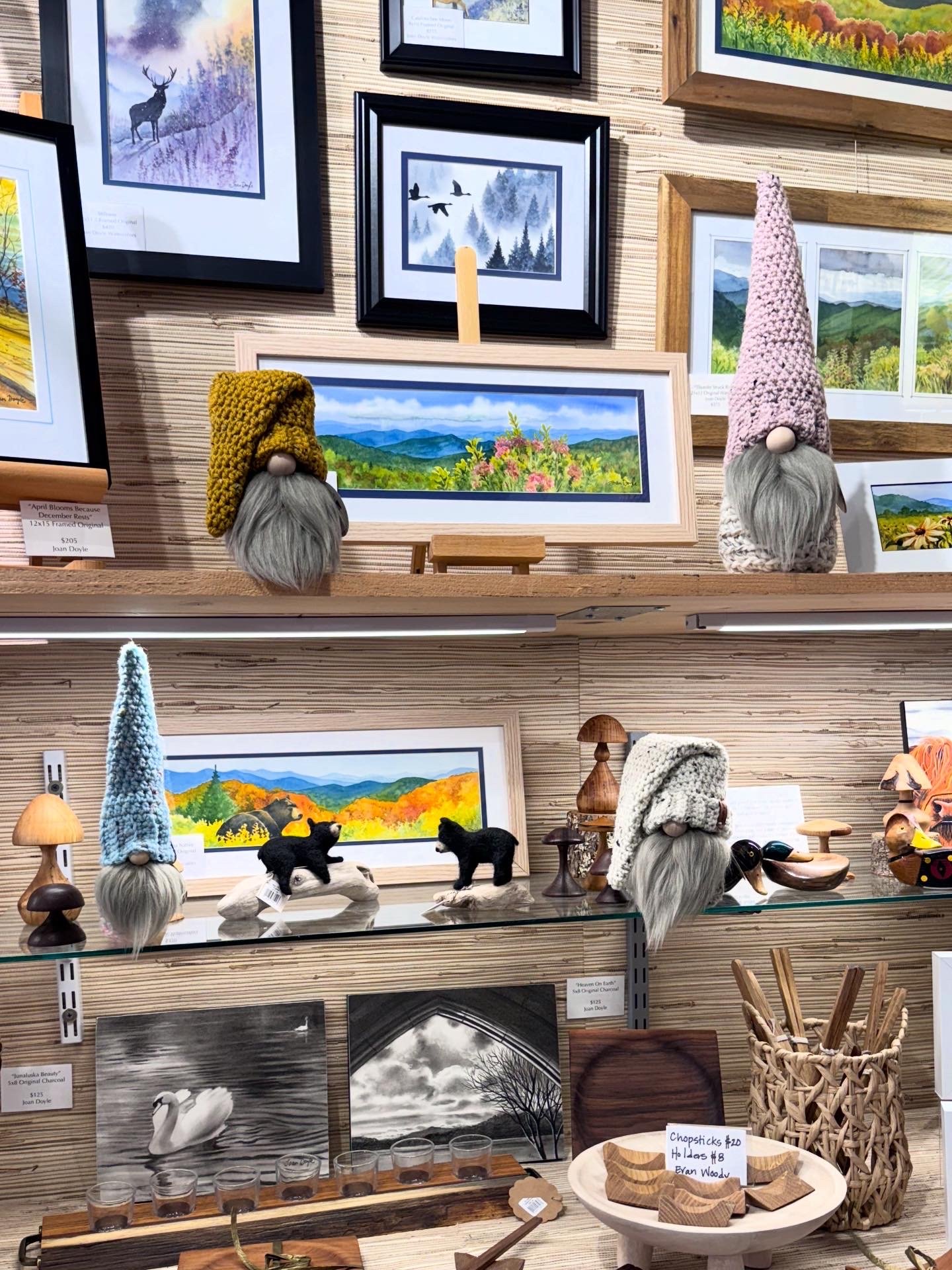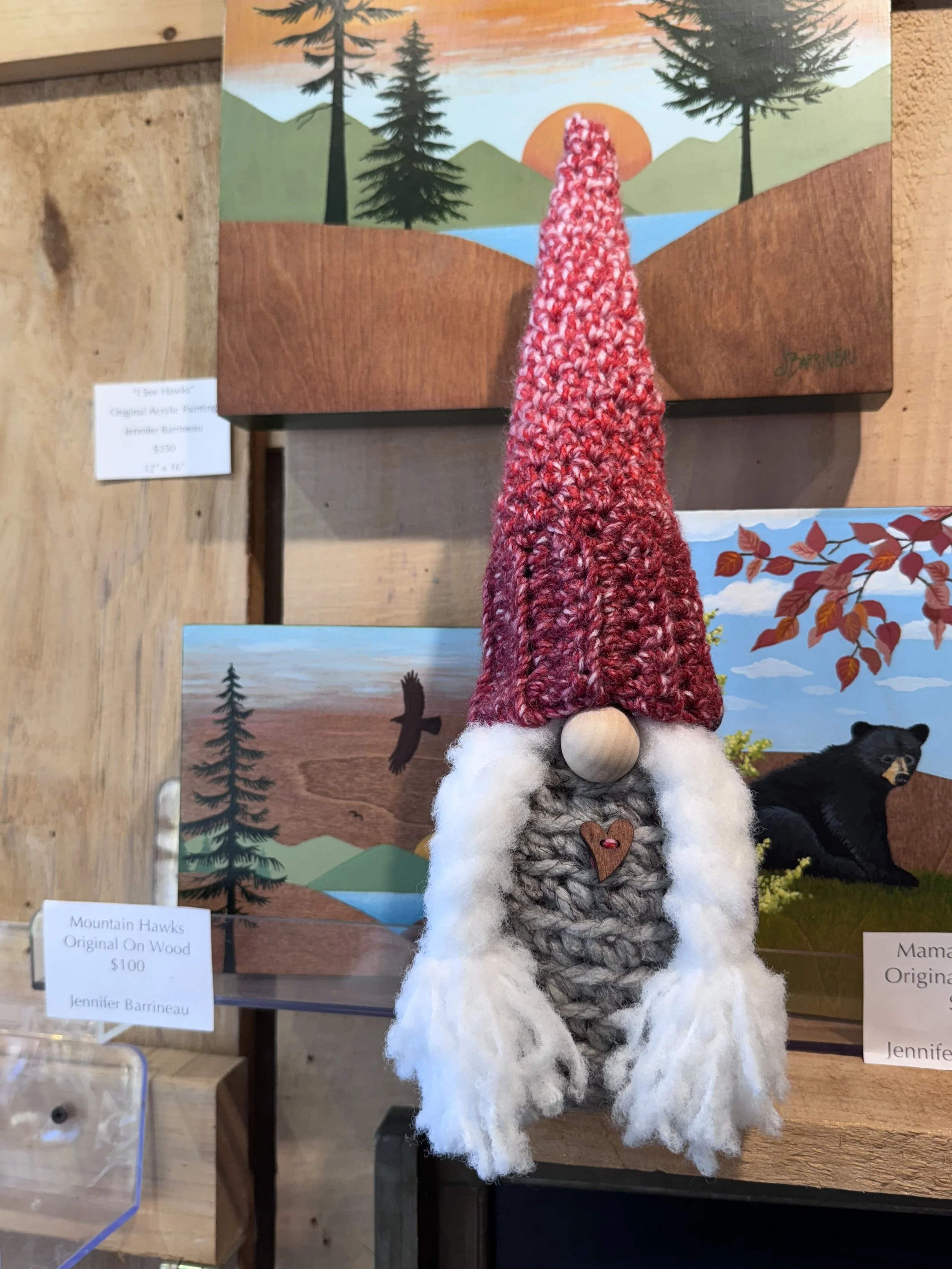 Visit Artisans on Main at 14 N Main Street in Weaverville, NC, for Knottie Yeti gnomes and to check out the work of many talented area artists in this beautifully curated shop.